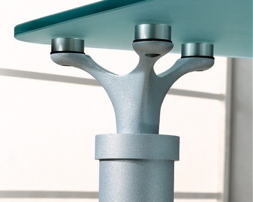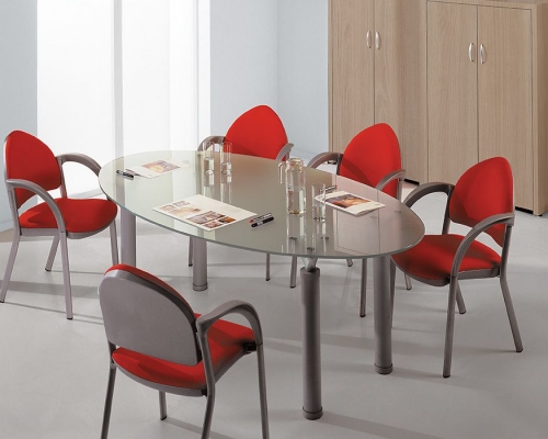 Материал: «Классика» – столы ДСП на опорах из ДСП, «Модерн» – столы ДСП на металлических опорах, с перфорированным щитом, «Авангард» – столешница из матового стекла «Satinato» на металлических опорах.