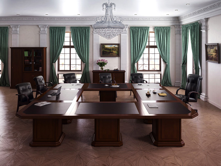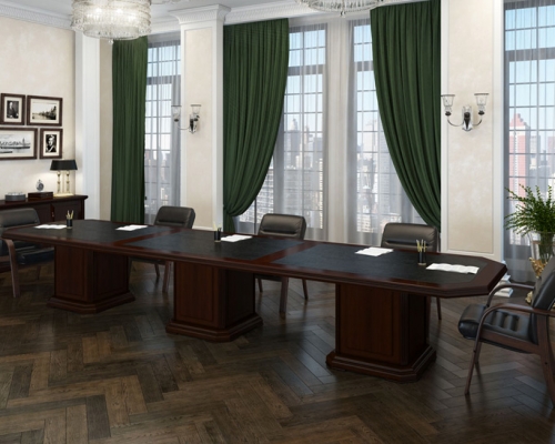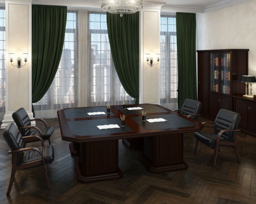Стол для переговоров серии Ministry бесспорно относится к элитной офисной мебели для переговорной зоны. Его монументальный вид демонстрирует несокрушимость и величие. Выполненный в классическом стиле стол для переговоров Ministry символизирует стабильность, солидность и процветание, подчеркивая тем самым статус фирмы и ее владельца.