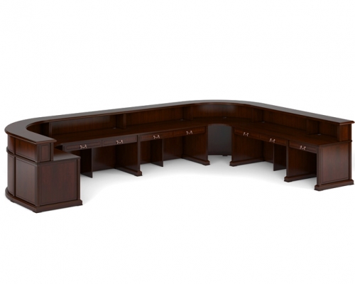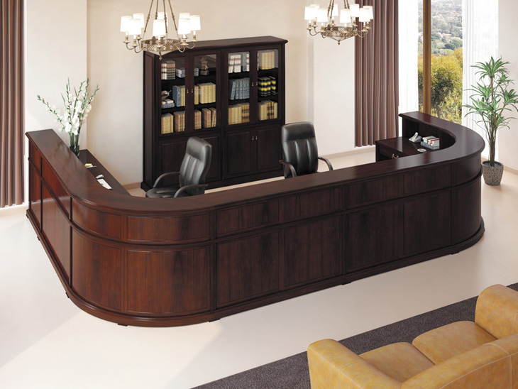 Элитные стойки - ресепшн Ministry являются прекрасным вариантом оформления приемной для тех клиентов, которые с особой тщательностью относятся к оформлению своего офиса. Помимо статусного внешнего вида, стойки Ministry отличаются высокой практичностью и обеспечивают комфортную рабочую зону для администратора.