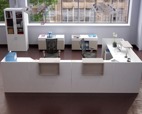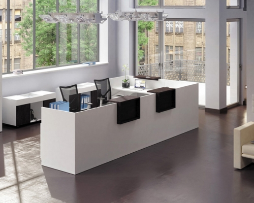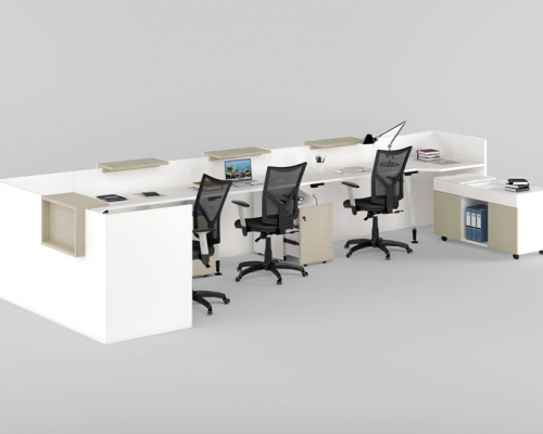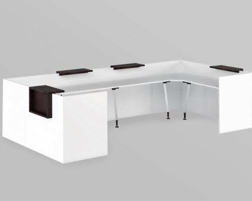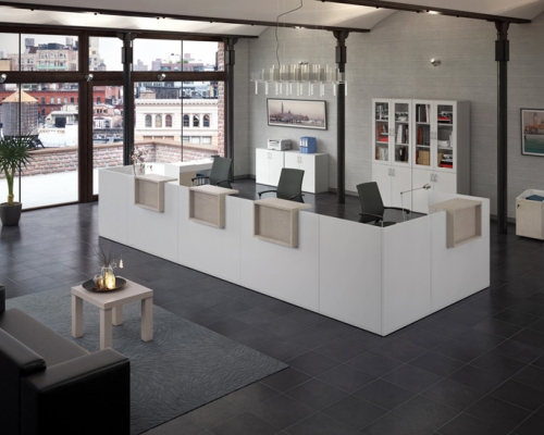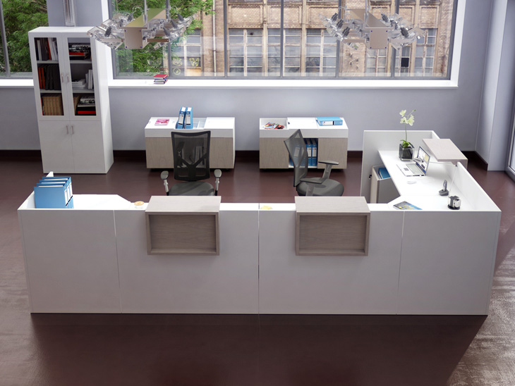 Мебель этой серии выполнена в минималистическом стиле. С помощью этой мебели можно создать лаконичный и функциональный интерьер. В нем будет комфортно работать с клиентами, принимать звонки. Все тумбочки и ящики выполнены таким образом, чтобы их было удобно передвигать, формируя удобное рабочее место.