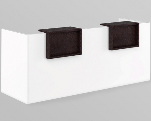 Материал: МДФ, покрытие столешниц и фасадов - порошковая краска, покрытие полки - шпон светлого/тёмного дуба, толщина столешниц - 25 мм., полки - 26 мм.