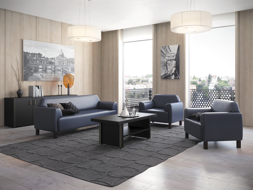 Прекрасный вариант мягкой мебели для переговорных комнат, зоны ожидания. Прямые линии модели позволяют не только удобно размещать его внутри помещения, но и делают эту модель очень современной и актуальной.