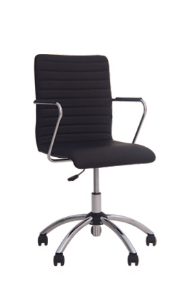 Комфортное сидение со скругленным передним краем и эргономичная спинка изготовлены на основе цельного каркаса. Регулируемая высота сидения, хромированный пневматический подъемник (модификация GTP). Хромированные подлокотники с пластиковыми накладками. Металлическая хромированная база (модификация GTP). Доступна конференц-версия TASK CF.