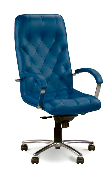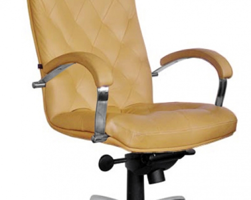 Модель оснащена механизмом «Мультиблок». Кресло комплектуется подлокотниками, обитыми кожей и полированной алюминиевой базой.