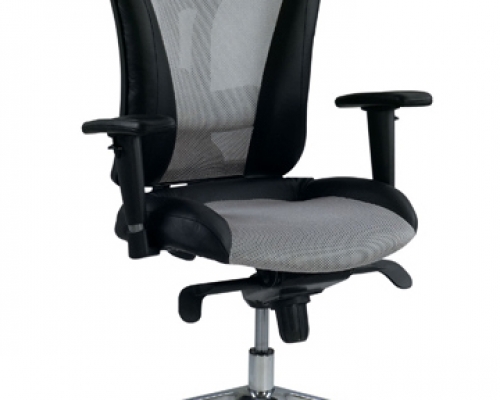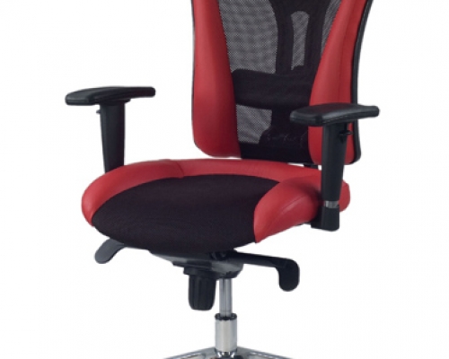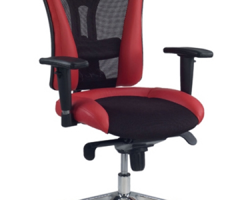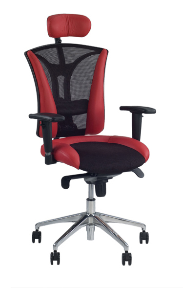Выполнено в натуральной коже Lux, спинка кресла выполнена из эластичной дышащей сетки (100% полиэстер). Модель оснащена регулируемым подголовником (модификация HR. Регулируется высота и угол наклона подголовника), синхромеханизмом, регулируемым по высоте поясничным валиком. Комплектуется регулируемыми по высоте подлокотниками с мягкими полиуретановыми накладками, а также полированной алюминиевой базой. Предусмотрено два вида роликов - для мягких (ковровые покрытия) и твердых (паркет, ламинат) покрытий. На нерабочих поверхностях допускается использование искусственной кожи.