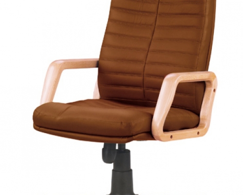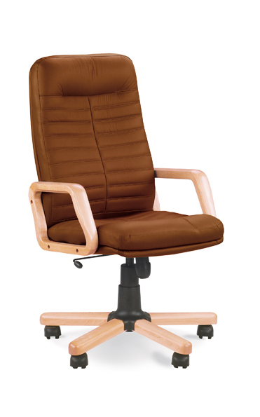 Модель оснащена механизмом качания. Комплектуется деревянными подлокотниками и металлической пятилучевой базой с деревянными накладками. Предусмотрено два вида роликов - для мягких (ковровые покрытия) и твердых (паркет, ламинат) покрытий. На нерабочих поверхностях допускается использование искусственной кожи.