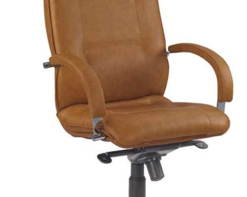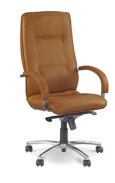 Модель оснащена механизмом «Мультиблок». Кресло комплектуется подлокотниками, обитыми кожей, а также полированной алюминиевой базой. Предусмотрено два вида роликов - для мягких (ковровые покрытия) и твердых (паркет, ламинат) покрытий. На нерабочих поверхностях допускается использование искусственной кожи.