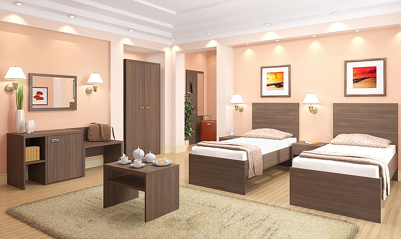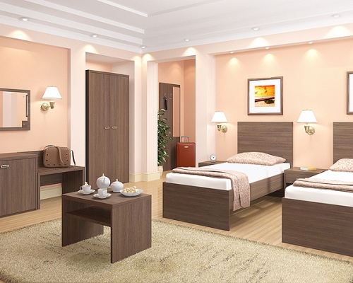 Гостиница, оснащенная лаконичной и элегантной мебелью Агата, оставит приятное впечатление у её посетителей. Максимально простой на первый взгляд дизайн и эргономичность изделий обеспечат комфортный отдых в уютной атмосфере. Выбирая мебель для гостиниц Агата, можете быть уверены в том, что интерьер гостиничные номеров будет гармоничным. Данная коллекция сделает обстановку современной и удобной, повысив популярность гостиницы среди постояльцев. Для оформления интерьера гостиницы предлагается два цветовых решения: утонченный светлый "Дуб альпийский" и аристократичный "Дуб Шамони" с ярко выраженной текстурой дерева. Дизайнерское исполнение коллекции поможет достичь единства стиля интерьера. Широкий и функциональный модельный ряд позволяет оснастить мебелью номера гостиниц различной площади.