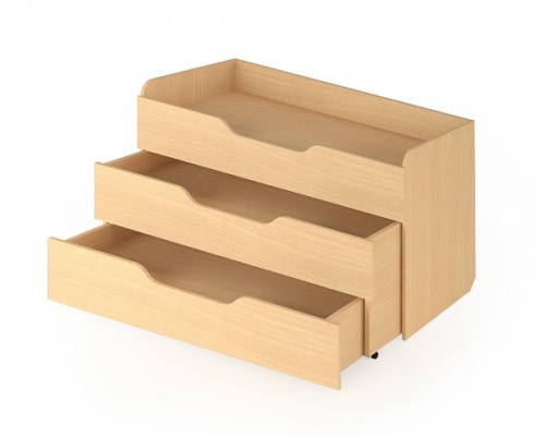 Материал: ЛДСП 16 мм., у выдвижного нижнего яруса боковые панели 22 мм., жесткое цельное дно из ЛДСП 16 мм.