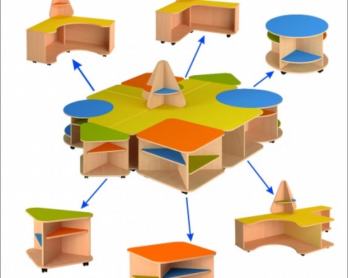 Игровой составной модуль состоит из 6 изделий. Каждое изделие можно преобрести отдельно. Изготовлено из высококачественной ЛДСП, с применением надежной и качественной фурнитуры. Все модели снабжены противоскользящими насадками на опоры, радиусными – безопасными углами и противоударной кромкой в 2 мм.