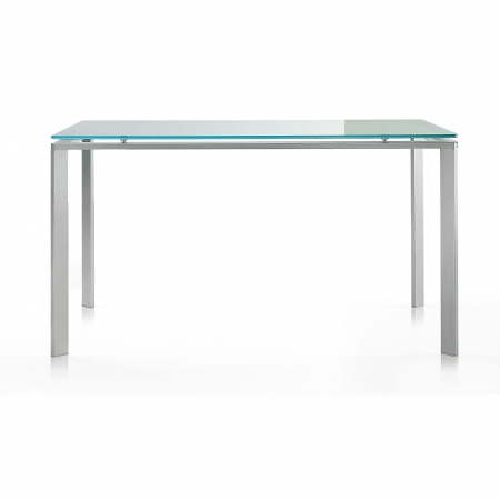 Каркас из нержавеющей стали 60x20 мм. Матовая стеклянная столешница толщиной 12 мм. Съемная.