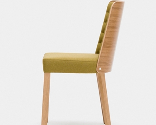 К3 – дизайнерский стул с мягкой обивкой. Рама стула изготовлена из массива бука. Спинка из высококачественного шпона имеет вертикальный изгиб. Обивка спинки выполнена с декоративной горизонтальной стежкой.