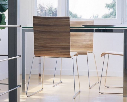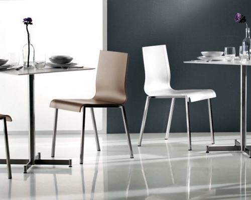 Стул с корпусом из технополимера, белого или цвета слоновой кости. Гибкий, прочный, устойчивый к царапинам материал. Хромированный стальной трубчатый каркас 16 мм.