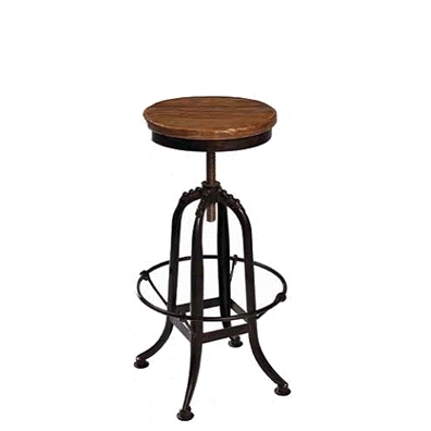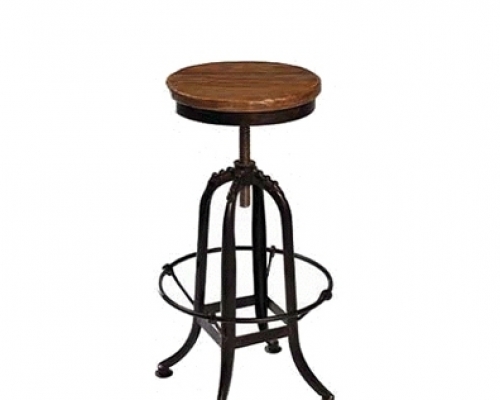 Металлический барный стул в индустриальном стиле. Литой фактурный каркас и регулируемое сиденье из искусственно состаренного массива вяза. Надежный, практичный и модный атрибут для интерьеров в индустриальном стиле. Идеально подойдет для оформления пабов, баров и стрит-фуд кафе.