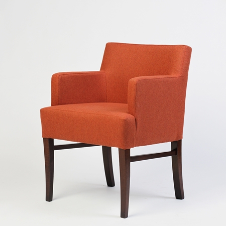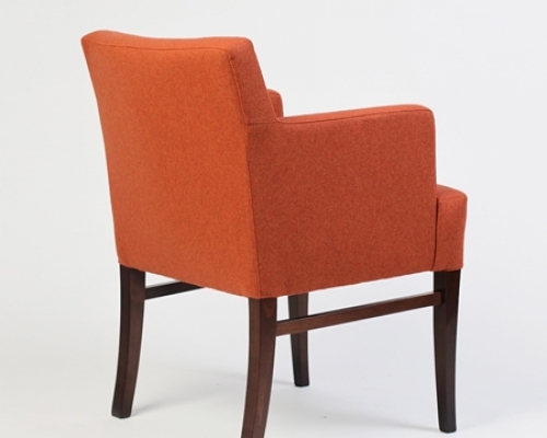 Кресло из массива бука с четкими строгими формами. Мягкая обивка кресла может быть выполнена из различных материалов по желанию заказчика, что позволяет сформировать окончательную стилистическую составляющую. Простое и элегантное кресло качественно дополнит любой дизайн-проект офисов, кафе, гостиниц и ресторанов.