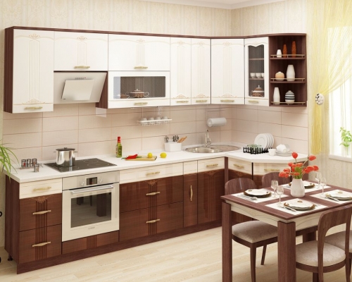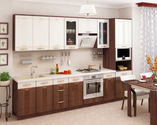 Набор мебели для кухни «Каролина» выполнен в гармоничной комбинации цветов. Сочетание темных и светлых текстур придают кухне «Каролина» особую выразительность.