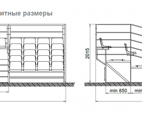 • Трибуна может быть приподнята над уровнем основания до 1500 мм (для удобства обзора через борта хоккейной коробки, рекламные щиты и др.)