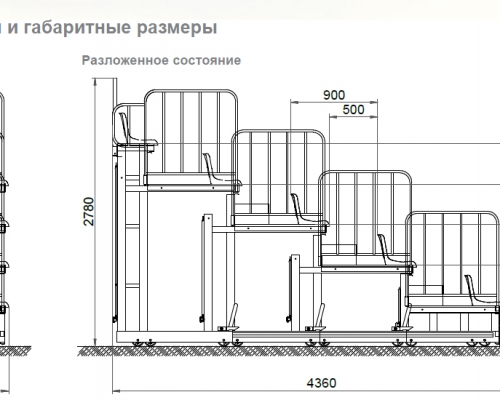 • Наличие боковых и заднего ограждений обеспечивает безопасность зрителей при входе и выходе с трибун