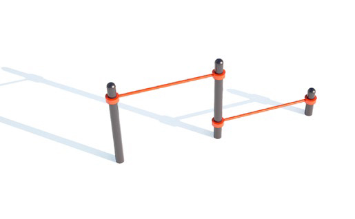 Снаряд состоит из двух средних стоек, низкой стойки и двух перекладин, закрепленных с помощью хомутов-соединителей, на высоте 1100 мм и 250 мм от основания покрытия площадки.
