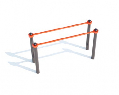Снаряд состоит из попарно соединенных четырех средних стоек и двух жердей, закрепленных с помощью хомутов-соединителей, на высоте 1200 мм от основания покрытия площадки. Парные соединения расположены параллельно друг другу на расстоянии 550 мм.