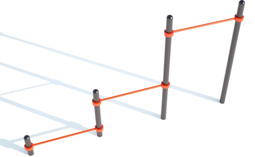Снаряд состоит из двух высоких стоек, средней стойки, низкой стойки и трех перекладин, закрепленных с помощью хомутов-соединителей, на высоте 2350 мм, 1100 мм и 250 мм от основания покрытия площадки.