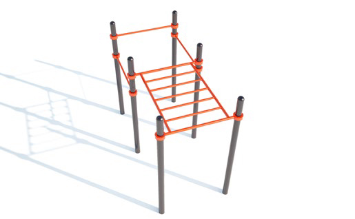 Снаряд состоит из шести высоких стоек, горизонтальной лестницы, закрепленной с помощью хомутов-соединителей, на высоте 2350 мм и трех перекладин, закрепленных с помощью хомутов-соединителей, на высоте 2350 мм, 2100 мм, 1850 мм от основания покрытия площадки.