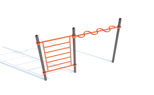 Снаряд состоит из трех высоких стоек и вертикальной лестницы, закрепленной с помощью хомутов-соединителей, на высоте 2450 мм от основания покрытия площадки и перекладины, закрепленной с помощью хомутов-соединителей, на высоте 2350 мм от основания покрытия площадки.