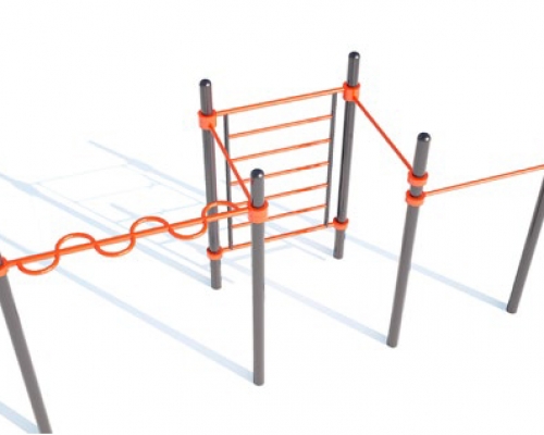 Снаряд состоит из шести высоких стоек, вертикальной лестницы, закрепленной с помощью хомутов-соединителей, на высоте 2450 мм от основания покрытия площадки, змейки, закрепленной с помощью хомутов-соединителей, на высоте 2350 мм от основания покрытия площадки и трех перекладин, закрепленной с помощью хомутов-соединителей, на высоте 2350 мм, 2100 мм и 1850 мм от основания покрытия площадки.