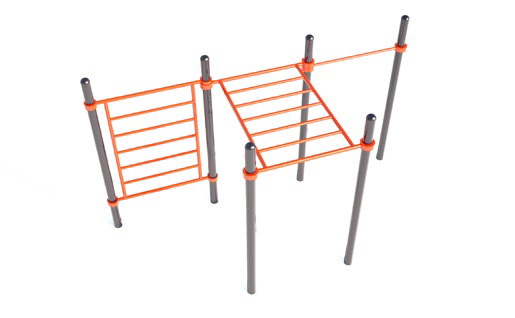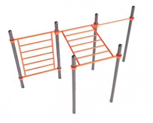 Снаряд состоит из шести высоких стоек, вертикальной лестницы, закрепленной с помощью хомутов-соединителей, на высоте 2450мм от основания покрытия площадки, горизонтальной лестницы, закрепленной с помощью хомутов-соединителей, на высоте 2350 мм от основания покрытия площадки и перекладины, закрепленной с помощью хомутов-соединителей, на высоте 2100мм от основания покрытия площадки.