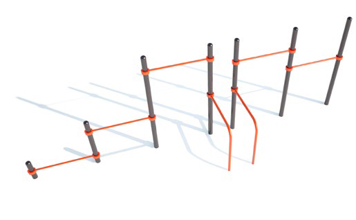 Секция из брусьев овальных, трех высоких средней и низкой перекладины В-012