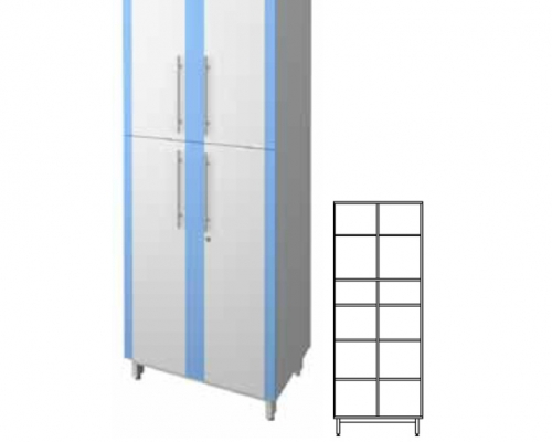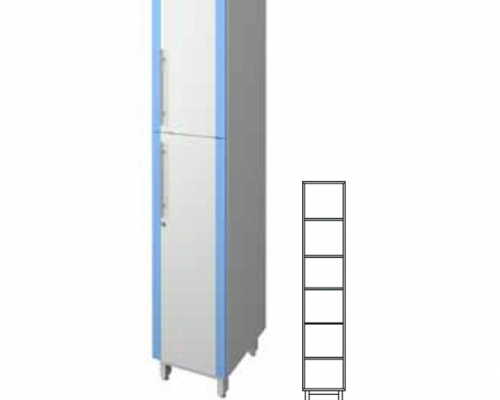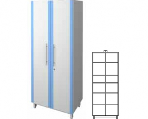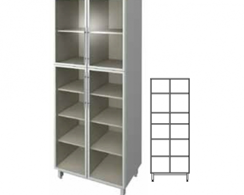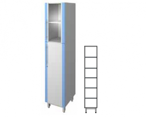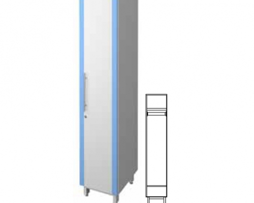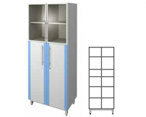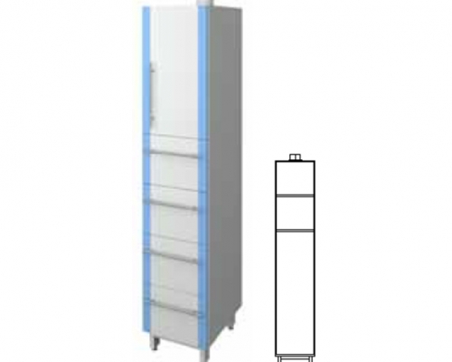 Корпус лабораторных шкафов хранения данного типа выполнен из высококачественного меламина. Фасады изготавливаются из софтформинга, тонированного стекла в алюминиевой раме либо в раме из софтформинга. Основанием служит рамный металлический каркас, окрашенный порошковой краской. Опоры регулируются в диапазоне 0-40 мм.