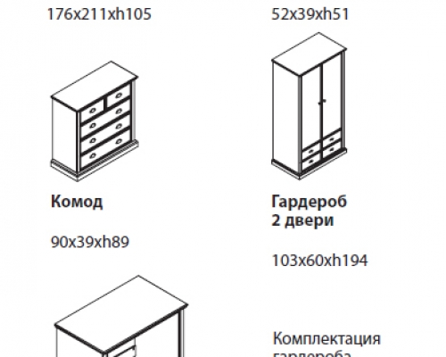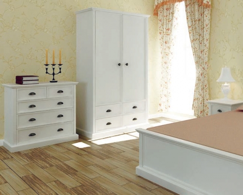 Коллекция Lorein выполнена в стиле французский прованс. Белый цвет зрительно расширяет пространство, а компактные элементы позволяют творчески подойти к процессу расстановки мебели. Изящное решение для небольших, уютных спален.