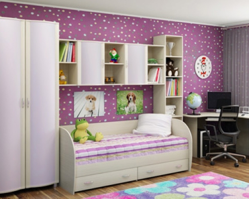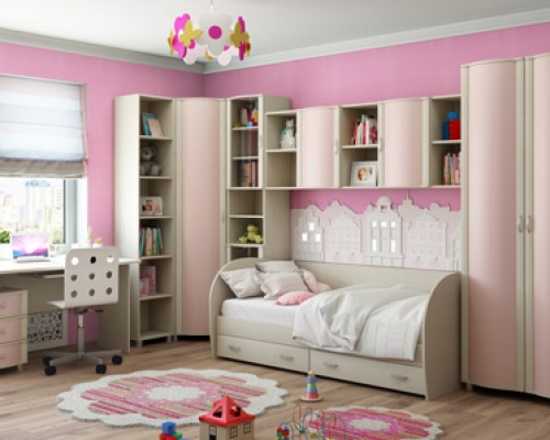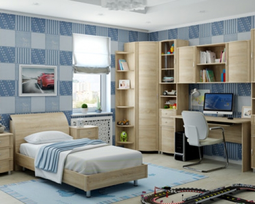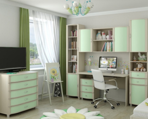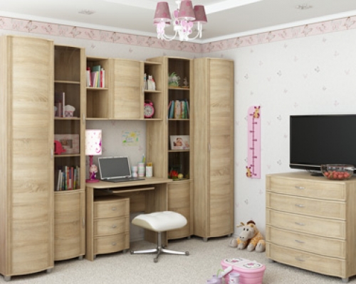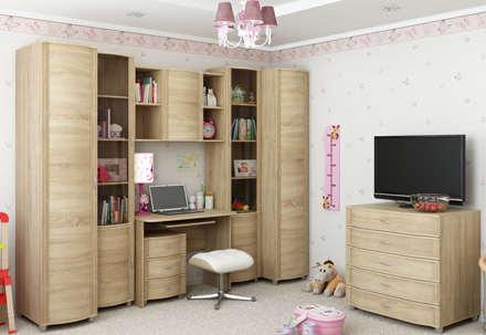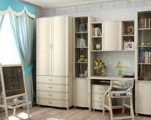 Детская выполнена в корпусе ЛДСП, фасады в МДФ.