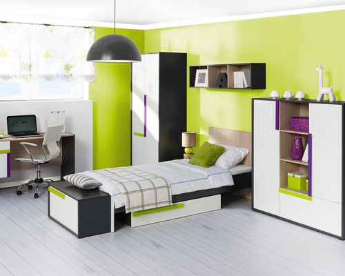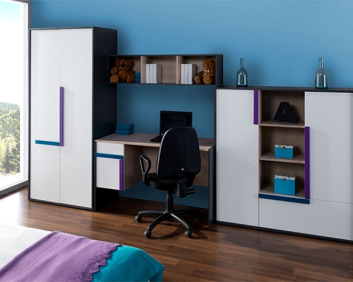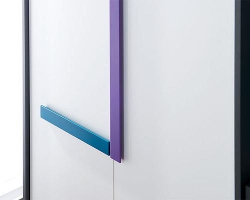 Изюминкой коллекции являются декоративные цветные ручки, которые делают мебель яркой и современной и позволяют ей гармонично вписаться в интерьер любой цветовой гаммы.
