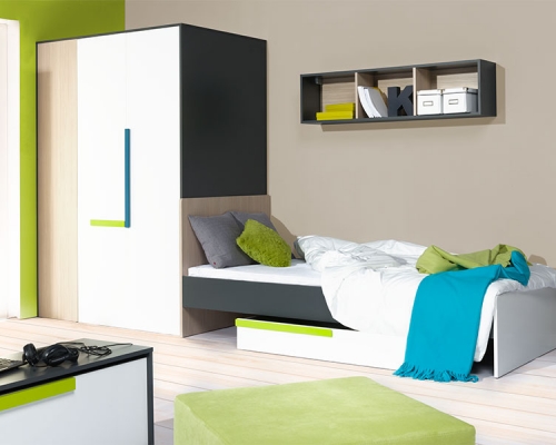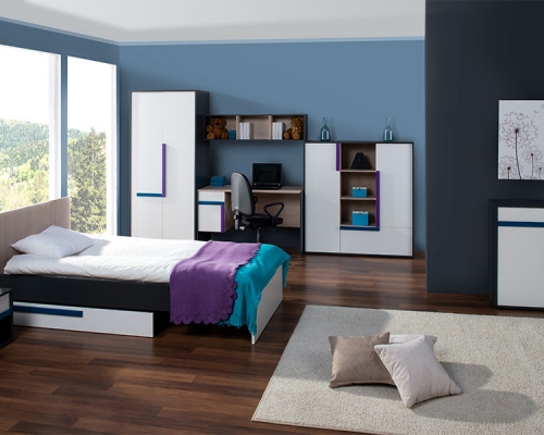 В коллекции представлен широкий выбор модулей для хранения: шкафы, в том числе угловой шкаф, комоды оригинального дизайна, а также подкроватный ящик и сундук для белья.