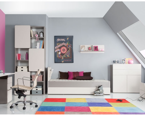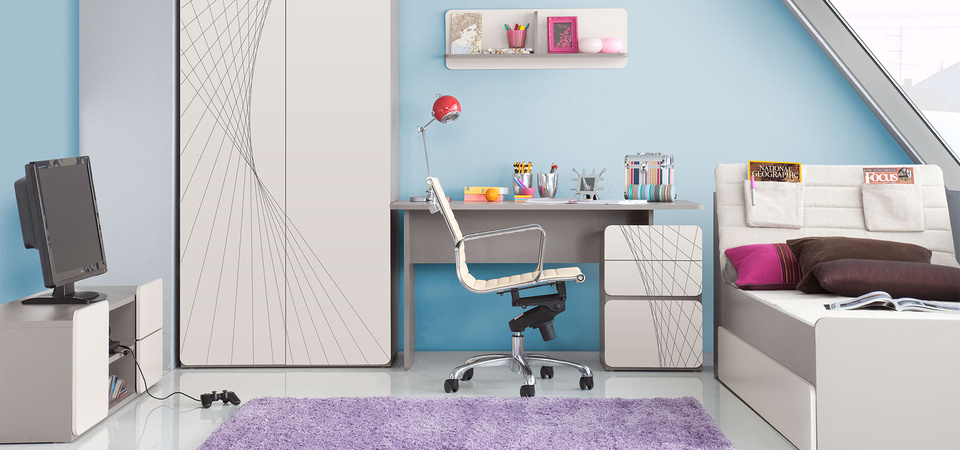 Коллекция включает в себя предметы мебели для малышей и подростков, это позволит легко переоборудовать комнату по мере взросления ребенка.
