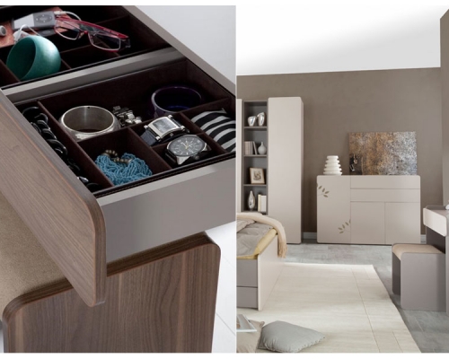 Мебель насыщена деталями, обеспечивающими комфорт ее владельцу: современная система позволяет открывать дверцы шкафов и комодов без ручек, все шкафы оборудованы внутренним освещением, качественна европейская фурнитура делает мебель абсолютно бесшумной.