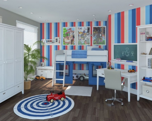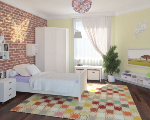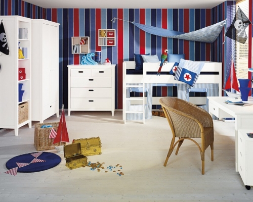 Доступны пять видов кроватей, угловой шкаф, стеллажи различных размеров, а также такие полезные детали как ящик для игрушек и доска для рисования.