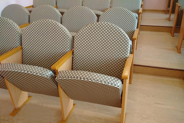 Театральные кресла Конгресс предназначены для оборудования различных залов заседаний в учебных, бюджетных и других учреждениях культуры. За счет широкого выбора цвета обивки и цвета ЛДСП, имеется возможность органично вписать данную модель кресла в любой интерьер.