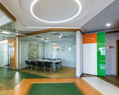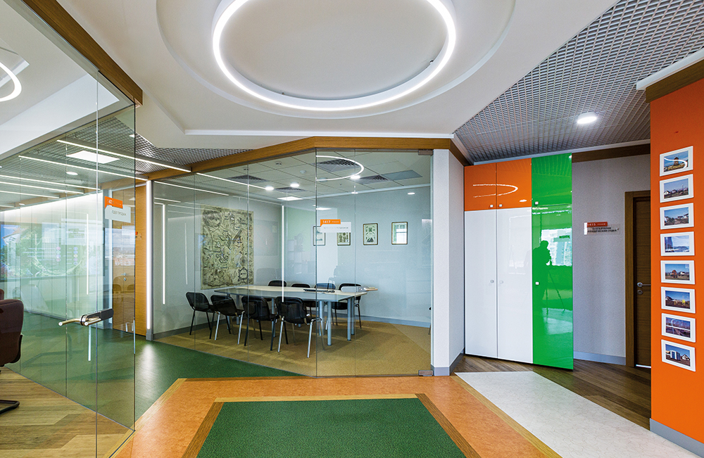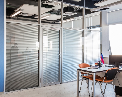 Прочное толстое стекло хорошо сохраняет тепло и создаёт комфортную обстановку в зависимости от запросов каждого сотрудника.