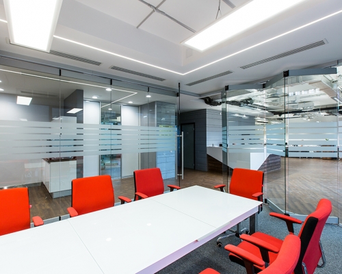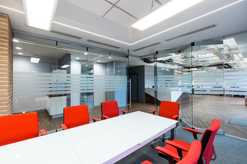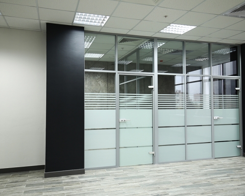 -высокая функциональность. В стеклянной части перегородки можно установить стеклопакеты с одним или двойным стеклом и навесить на них жалюзи. В них используются модульная конструкция с доступными креплениями, что позволяет быстро выполнить перепланировку. Для создания уюта и удобства при работе на перегородки навешиваются полки с цветами и книгами, столешницы;